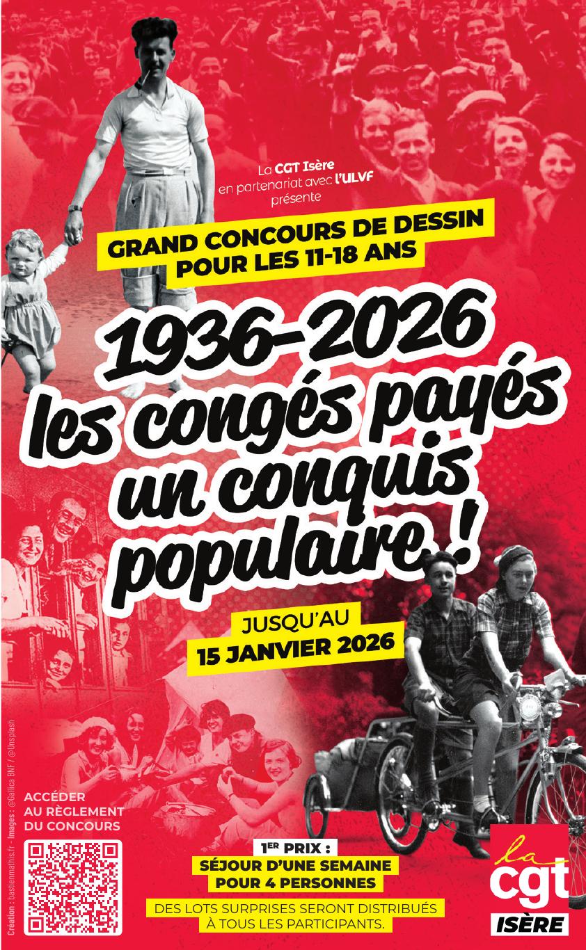 Dessine-moi, un congé payé La CGT Isère, en partenariat avec l’ULVF, organise à l’occasion du 90ᵉ anniversaire des congés payés un concours de dessin « 1936-2026, les congés payés un conquis populaire ! ». Ce concours se déroulera du jeudi […]
